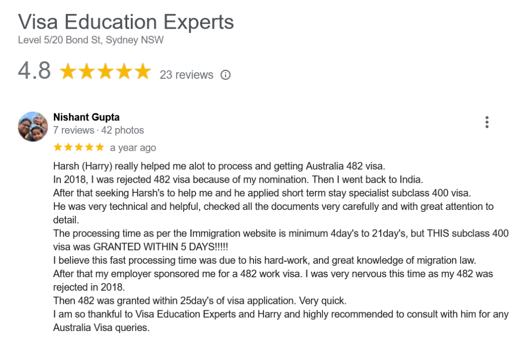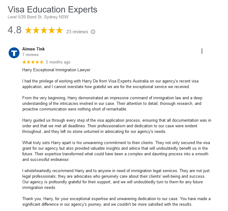 I had the privilege of working with Harry De from Visa Experts Australia on our agency's recent visa application, and I cannot overstate how grateful we are for the exceptional service we received.
