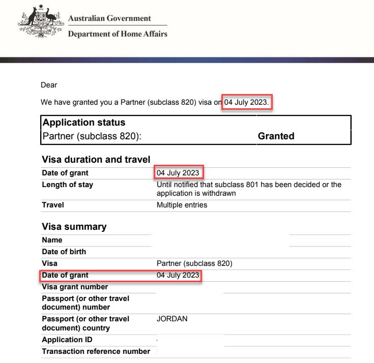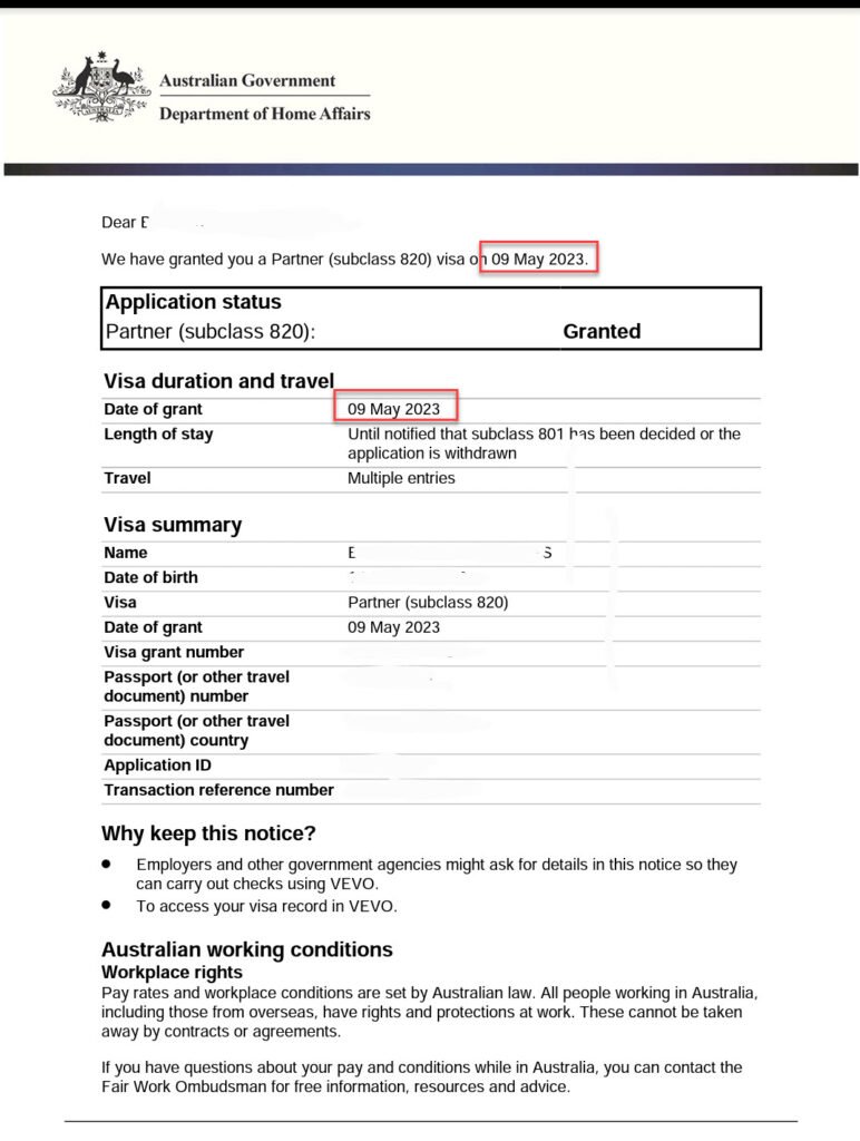 Temporary Partner Visa (subclass 820) and Permanent Partner Visa (subclass 801) granted in RECORD TIME of 4 months 7 days, while processing time for Immigration is close to 3 years!!