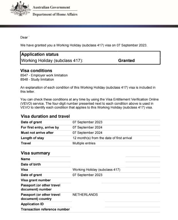 A 417 Working Holiday visa was granted for our client with Netherlands passport within 12 hours. She had applied for a Training Visa 407 with her employer and needed to arrive in Australia by 04 September 2023. But Immigration was taking very long to process this visa. So we reviewed the submitted 407 visa application (as that was not done by our company) to ensure that all documents were correctly uploaded and checked the application to see if everything was in line with the visa requirements. We then advised our client to provide the missing documents and then applied for a 417 visa as she was urgently wanting to come to Australia to commence her training with her employer. Then we wrote an email to Immigration requesting the training visa to be granted and at the same time applied for the working holiday 417 visa for our client. Our client was very satisfied with our services at the 417 Working Holiday visa being granted within 12 hours of applying.