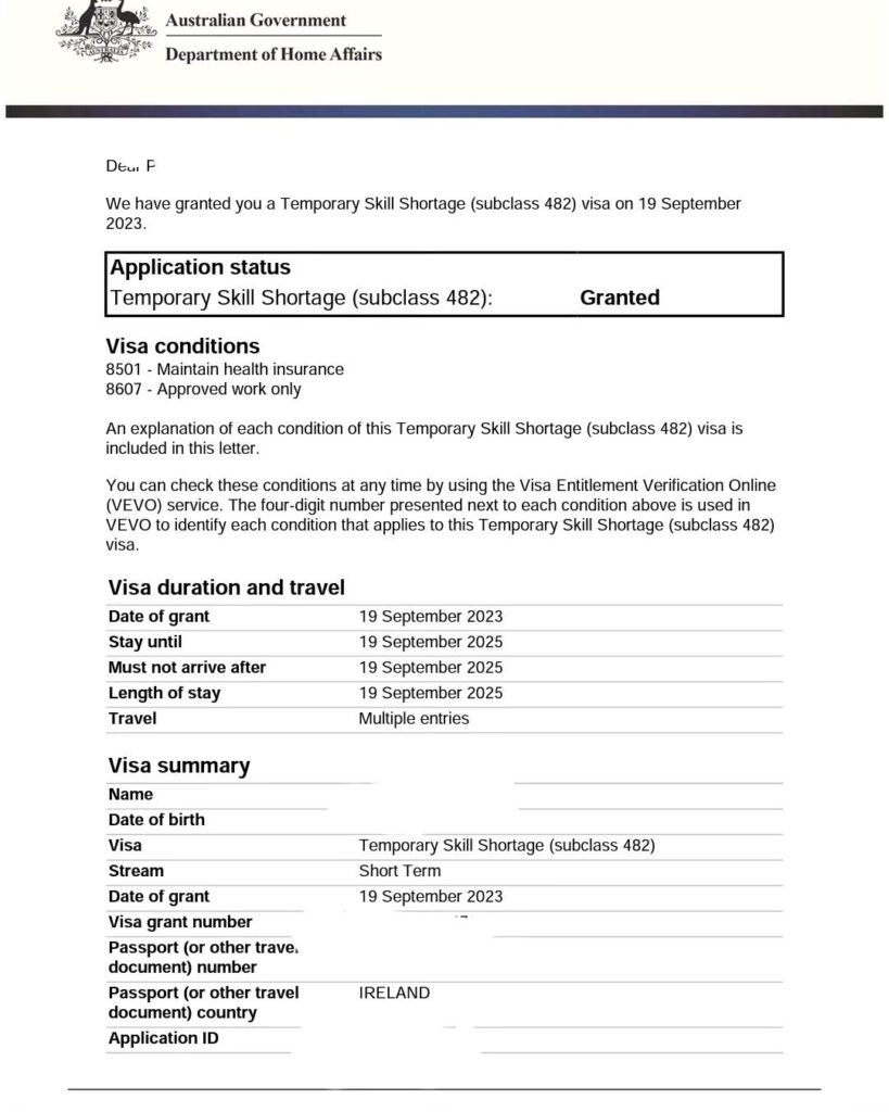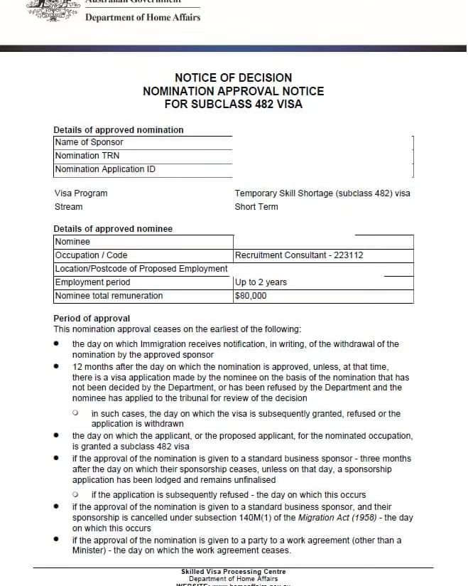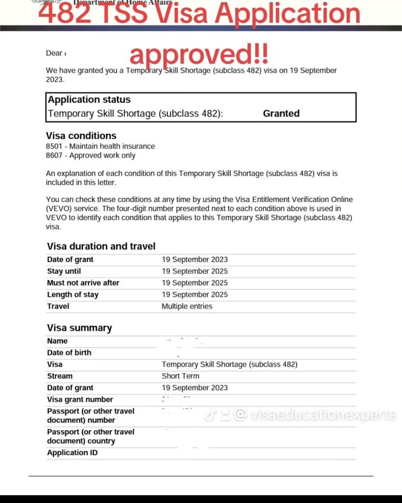 TSS 482 Nomination and Visa Application approved in 9 days!!