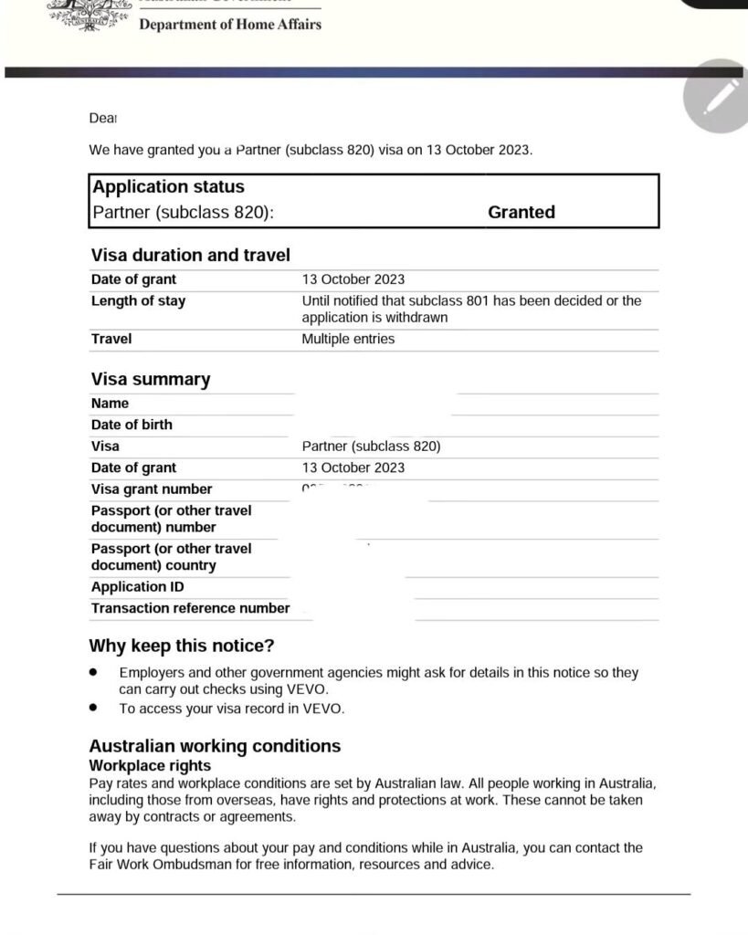 We helped our client who has a South African passport to get their Temporary Partner Visa (subclass 820) and Permanent Partner Visa (subclass 801) granted in RECORD TIME of 4 months 7 days, while processing time for Immigration is close to 3 years!!